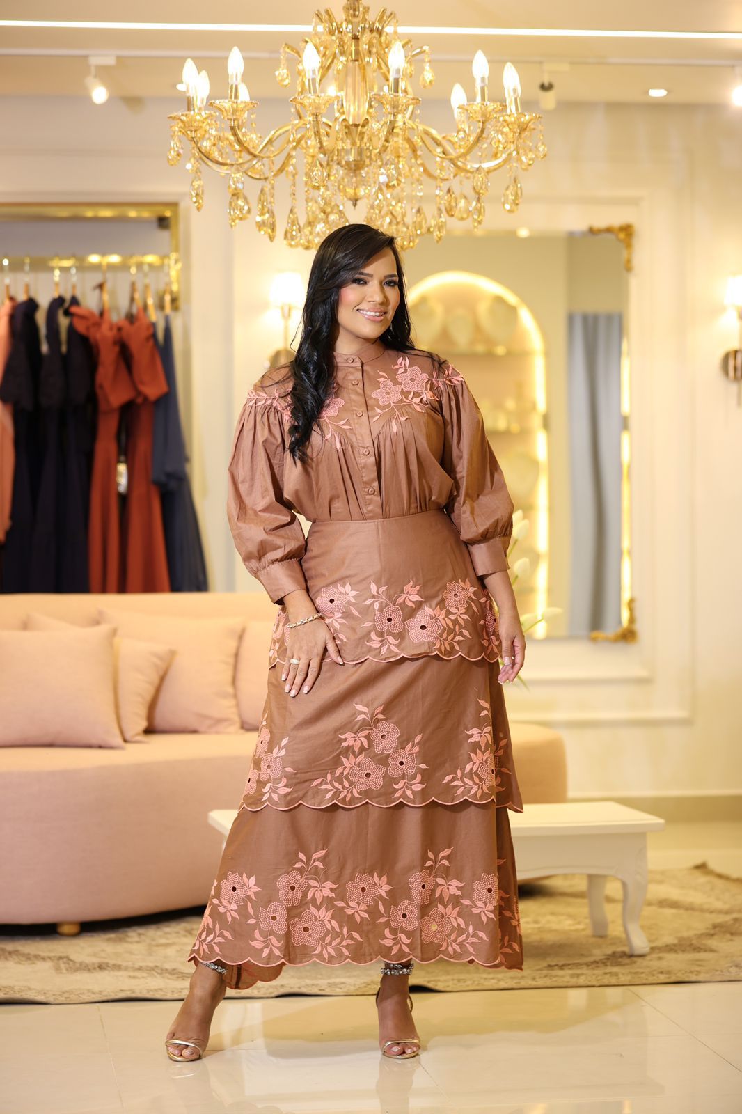 Sofisticada e rica em detalhes, a blusa em algodão marrom com bordados florais traz elegância clássica em uma peça única e marcante.