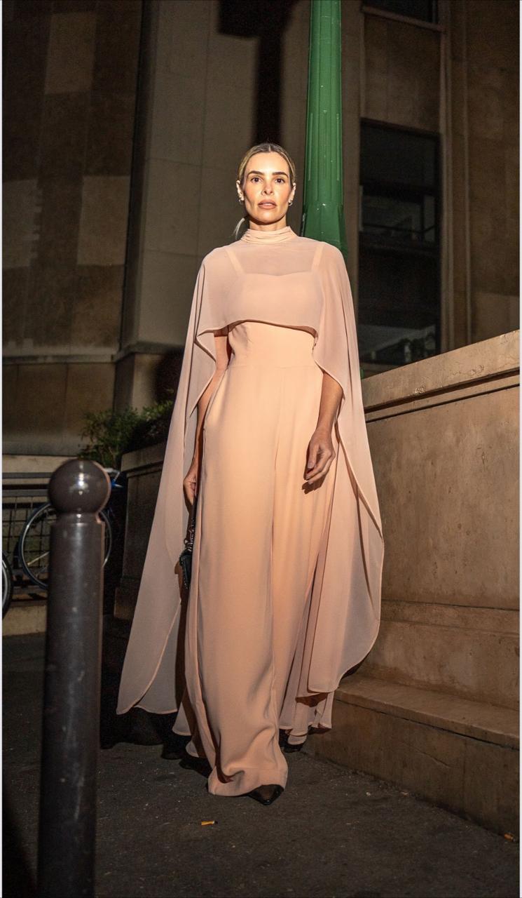 Elegante e imponente, este macacão em crepe premium traz uma proposta moderna e refinada. O design com capa fluida sobreposta cria um efeito de leveza e movimento, enquanto o corte reto e alongado valoriza a silhueta com sofisticação.