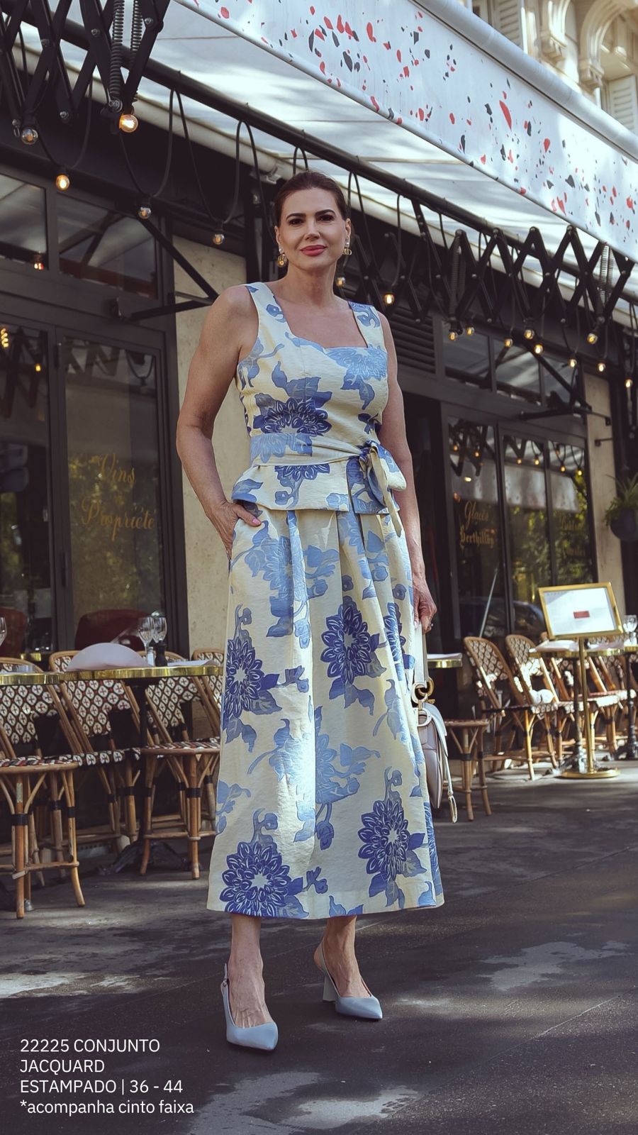 Sofisticado e imponente, o conjunto em jacquard estampado é uma peça que une textura, estrutura e elegância artesanal.